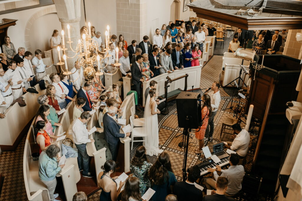 Er is plaats voor 150 gasten, maar ook met een kleine groep ben je welkom en voelt de ruimte door de indeling van de kerk niet te groot.